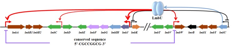Hou B, Lin Y, Wu H, et al. The novel transcriptional regulator LmbU promotes lincomycin biosynthesis through regulating expression of its target genes in Streptomyces lincolnensis[J]. Journal of Bacteriology, 2018, 200(2): e00447-17.
