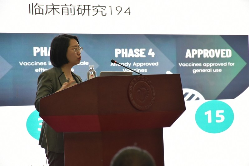 随后,谢莉为到场的师生作了题为“疫苗的故事”的报告,详细介绍了行业动向及产业前景。她讲述了目前全球疫苗概况、智飞生物在新冠疫苗研发过程及生产过程中遇到的重重考验、公司发展前景等,给予了广大师生一次难得的学习机会。