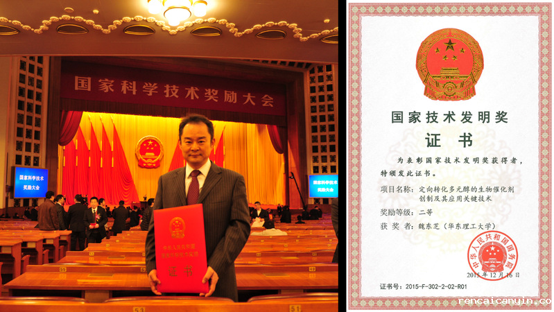 图片说明:魏东芝教授获得国家技术发明二等奖
